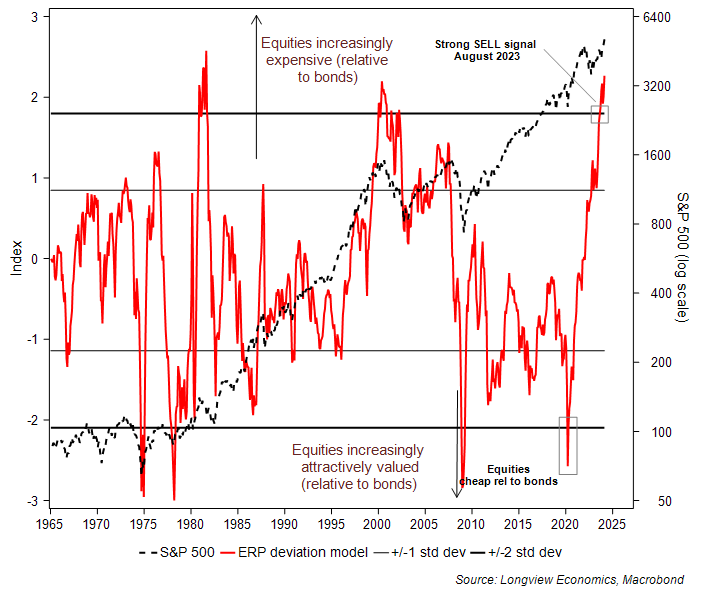 Fig 9iii: Longview dynamic ERP valuation model vs. S&P500