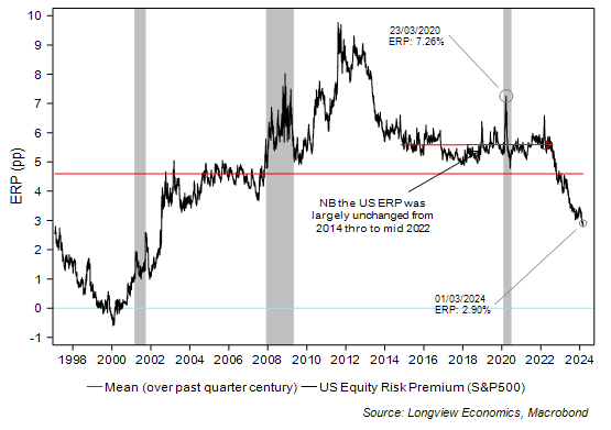 Fig 9ii: US equity risk premium (earnings yield less real bond rate)