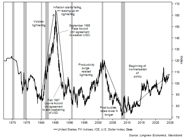 Fig 4: US dollar index shown with key bull and bear phases