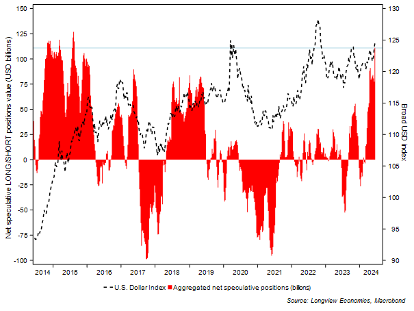 Fig 2: USD net speculative positioning2 vs. US dollar futures